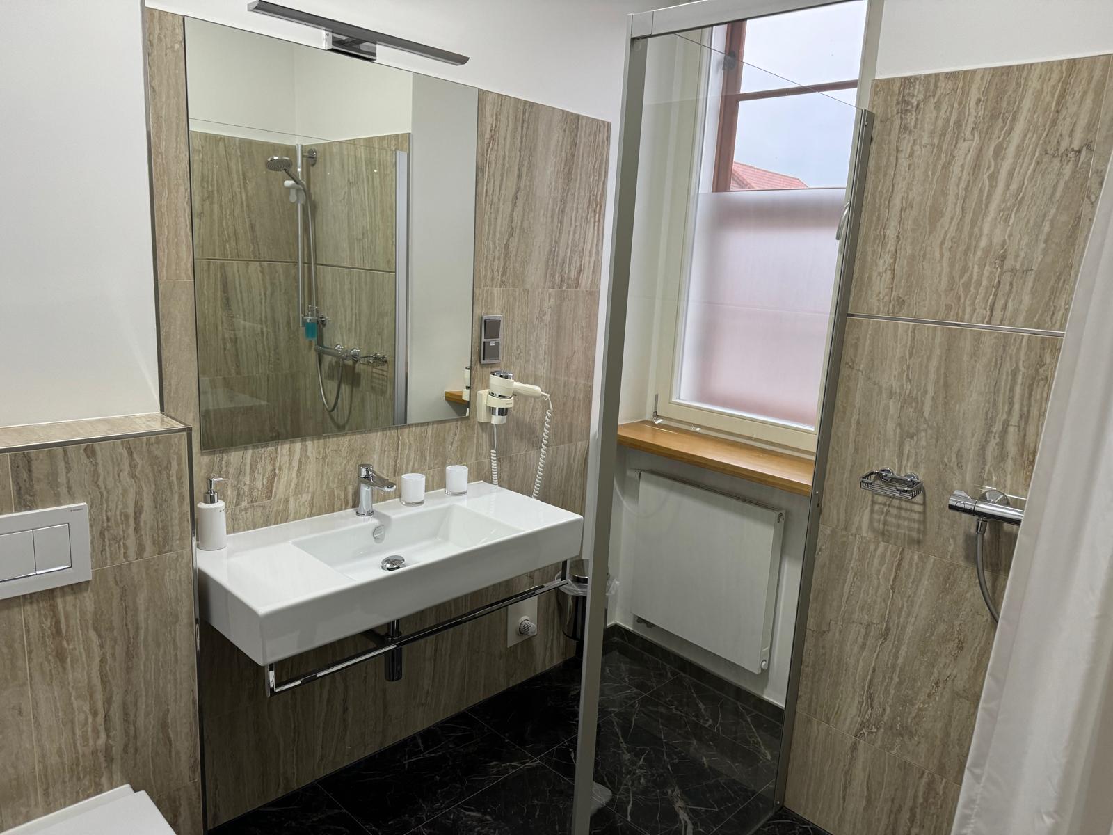 * moderne Bäder mit Dusche und teilweise mit Fenster